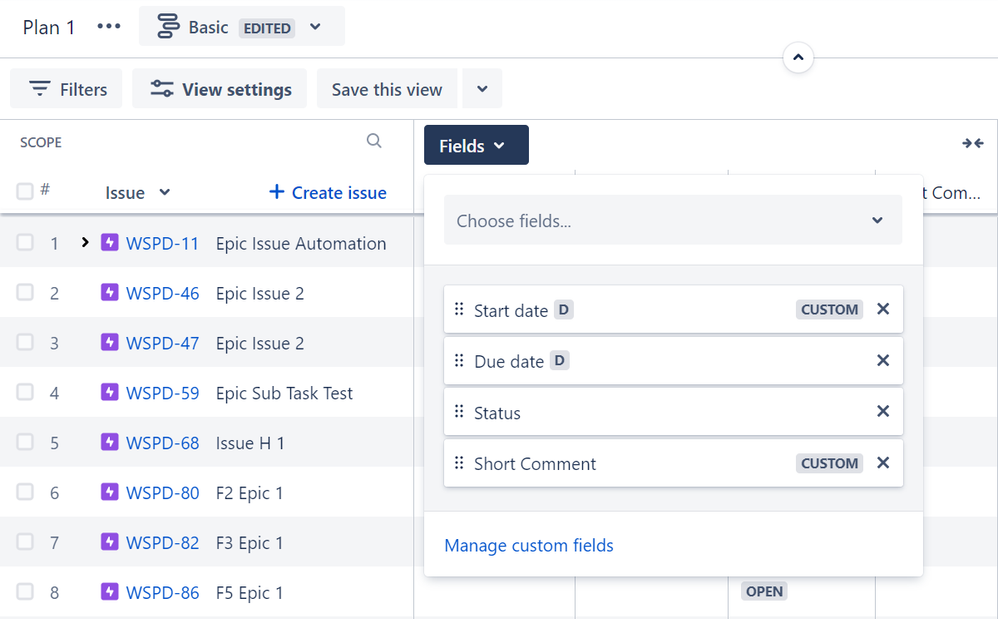 Hello! Custom fields were added to the plan https://disk.yandex.ru/i/I8ZL1Y5chBwm0Q, it is necessary to display these fields in the roadmap filter https://disk.yandex.ru/i/SD3e6fSCmb3t7g.