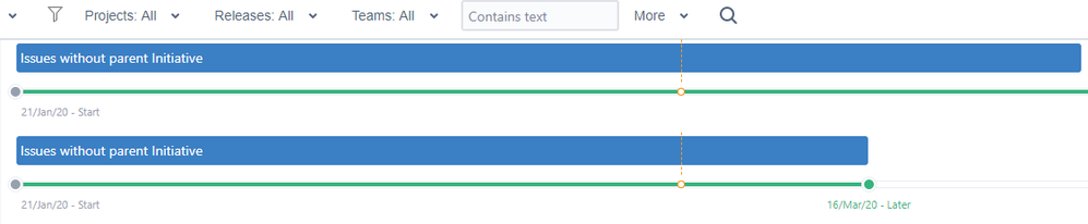 In Jira Portfolio there are two fields necessary to visualize the plan in the schedule: 'Target start date' and 'Target end date'. When these are filled you can see the progress bars as shown in the below picture.