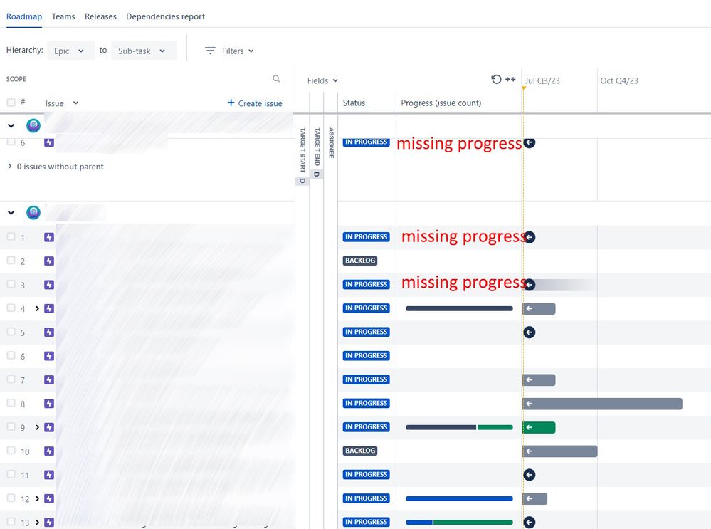 I have many epics with sub-issues (tasks, bugs, stories) that are not being displayed in the 'Progress (issue count)' field at all.