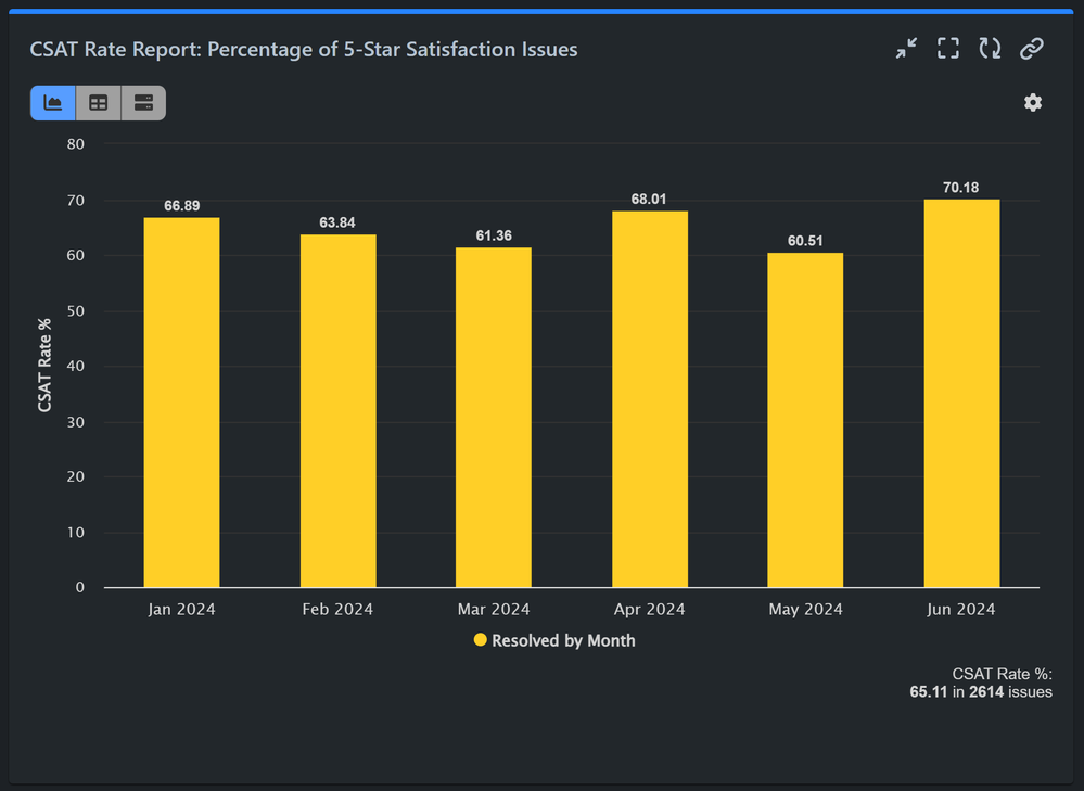 Customer satisfaction (CSAT) is a critical measure of service quality. This report shows the percentage of issues that received a 5-star rating, helping you gauge customer satisfaction and identify areas for improvement.