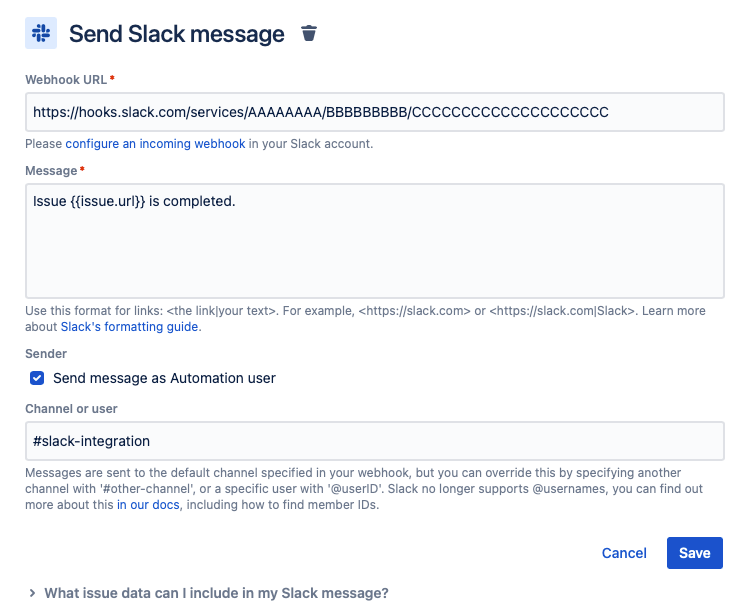 Create an automation rule in Jira to trigger the Incoming Webhooks on your Slack app