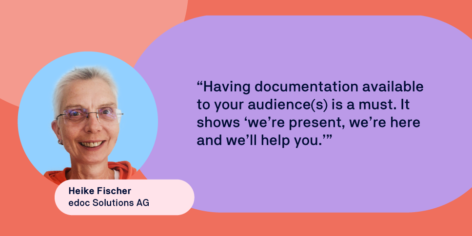 When Heike Fischer joined edoc in 2021 as the Language Quality and Localization Coordinator, she immediately saw the need to elevate their documentation practices to match the company’s forward-thinking approach.