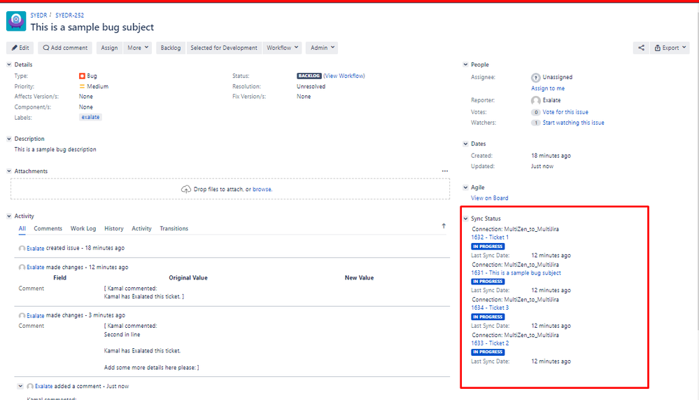 Now, go over to the Jira side and open the issue. Or you can click on the remote link from the Exalate tab on the Zendesk side.