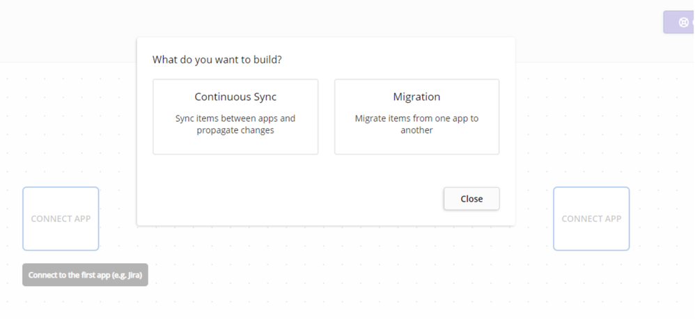 - Click on "Create Integration" and choose between "Continuous Sync" or "Migration" based on your requirements.