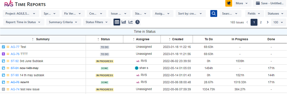 Incorporating Time In Status (TIS) reports by RVS in your agile project management toolkit can transform the way you track, analyze and optimize the workflow. TIS provides insights into duration and team performance.