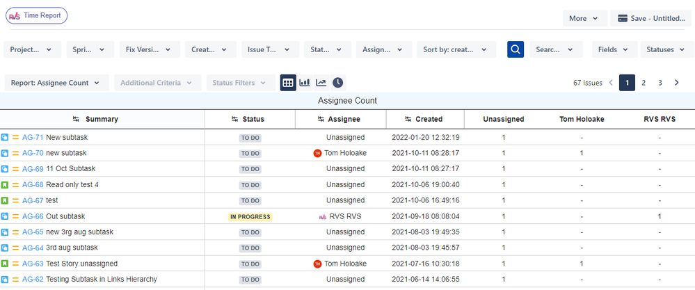4. Time with Assignee Count: This feature calculates the number of times a task or issue has been given to each team member. It helps project managers to understand task distribution and any imbalances of work if happening in the team.
