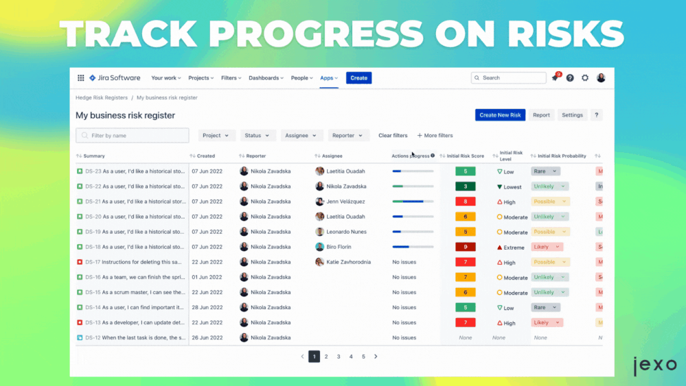 Just imagine that you can have different teams to identify and add their department risks to Jira at their own pace. And you can get a bird’s eye view of the whole company’s risk profile at weekly management meetings.