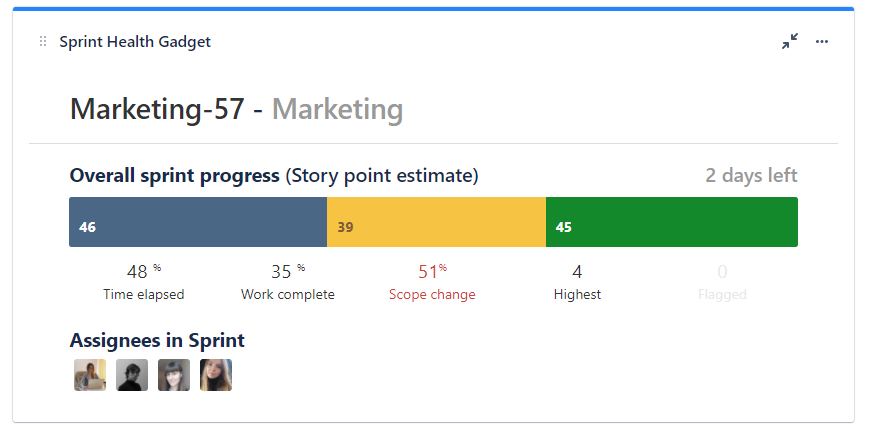 A combination of described gadgets gives you detailed information on how you’re progressing in the sprint from different perspectives: