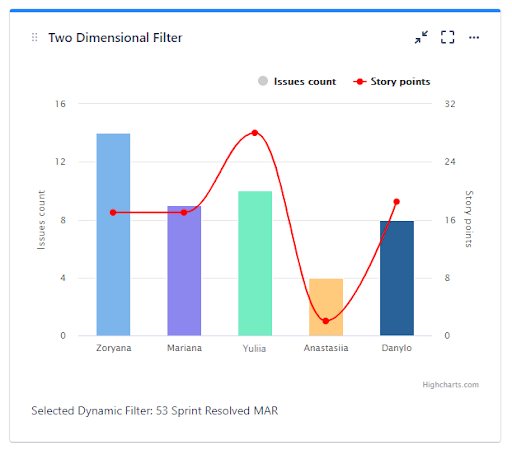 For example, you can analyze how many issues are assigned to each user, and story points estimated. It allows you to configure data in graph or table view.