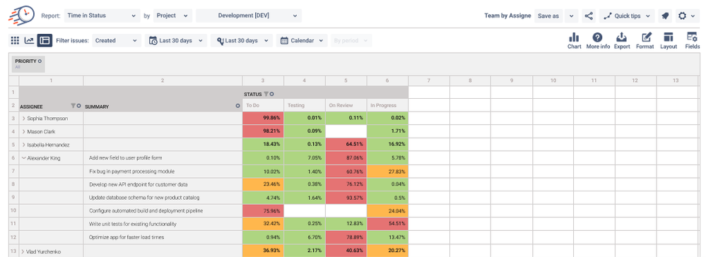π§ Provides detailed insights into how long issues are spent in each workflow status. |