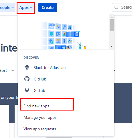Select Apps, under the drop-down menu select, Find new apps in your Jira instance.