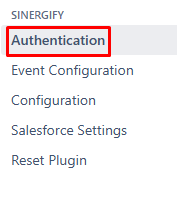 Select Authentication under the Sinergify sub-section on the left panel.