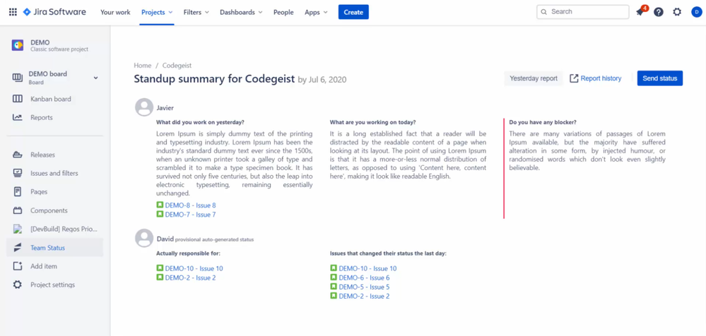 Hello everyone, we recently release Regos Team Status for Jira Cloud. Would be great if you take a look and share some feedback https://bit.ly/2HogAsR