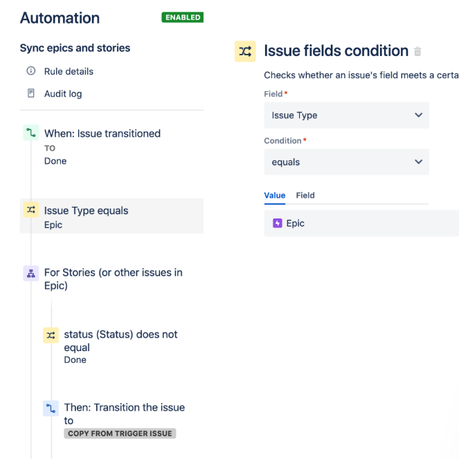 In the post functions, variables or conditions on the workflow transitions, JMWE also has the ability to use smart variables, much the same as native automation, meaning you gain more granular control of when and how those automations work.