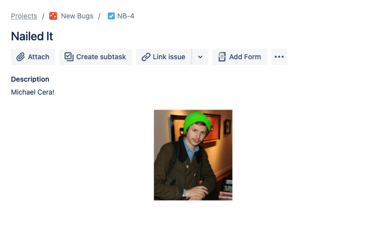 Oooh. Tricky. So the only way Jira does images inside of Description is by including an attachment with code like: