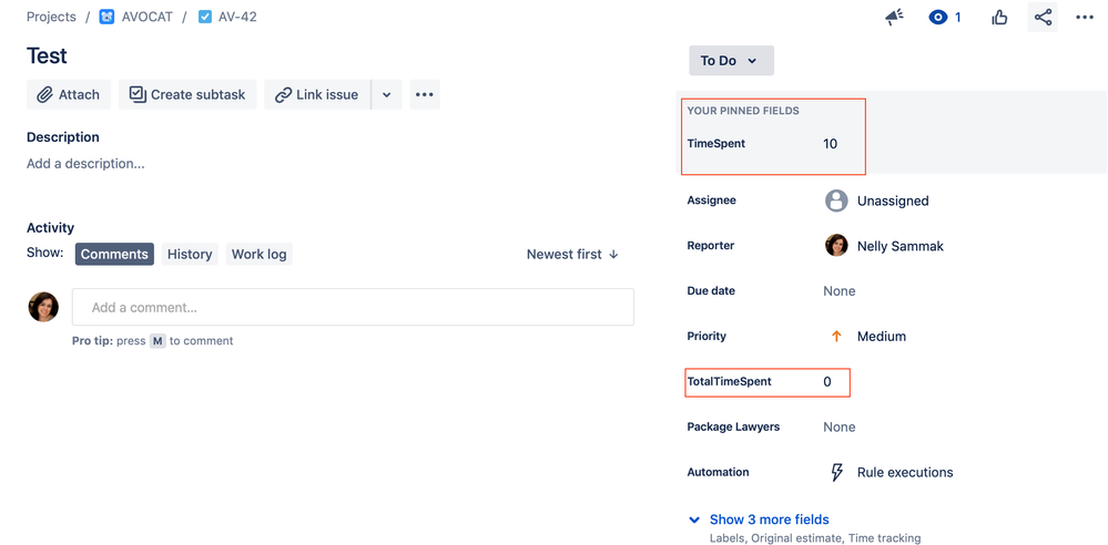 Hrm. I wonder if timeSpent is a reserved word for timetracking. I see various references to it here: