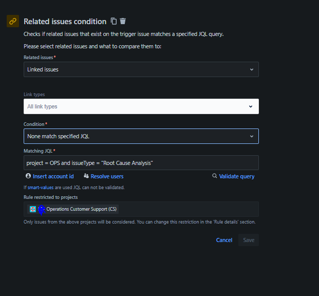 I modified a rule that is triggered when an issue is transitioned to done in Service Management Cloud. It then has a related issues condition checking that linked issues of the trigger do not match a JQL querery in a Jira Cloud Project. If none match an issue is then created in that Jira Cloud Project. I have the scope set as a single project for the Service Management Project. The creator of the rule had the scope set as multiple projects with the Service Managment and the Jira Cloud Project entered in the projects field. This caused us to reach 90% of our limit. In the audit log it says multiple projects after I modified the scope so it could only be triggered in the Service Management project. It is of my understanding that cross product issue creation is treated as a single project execution.
