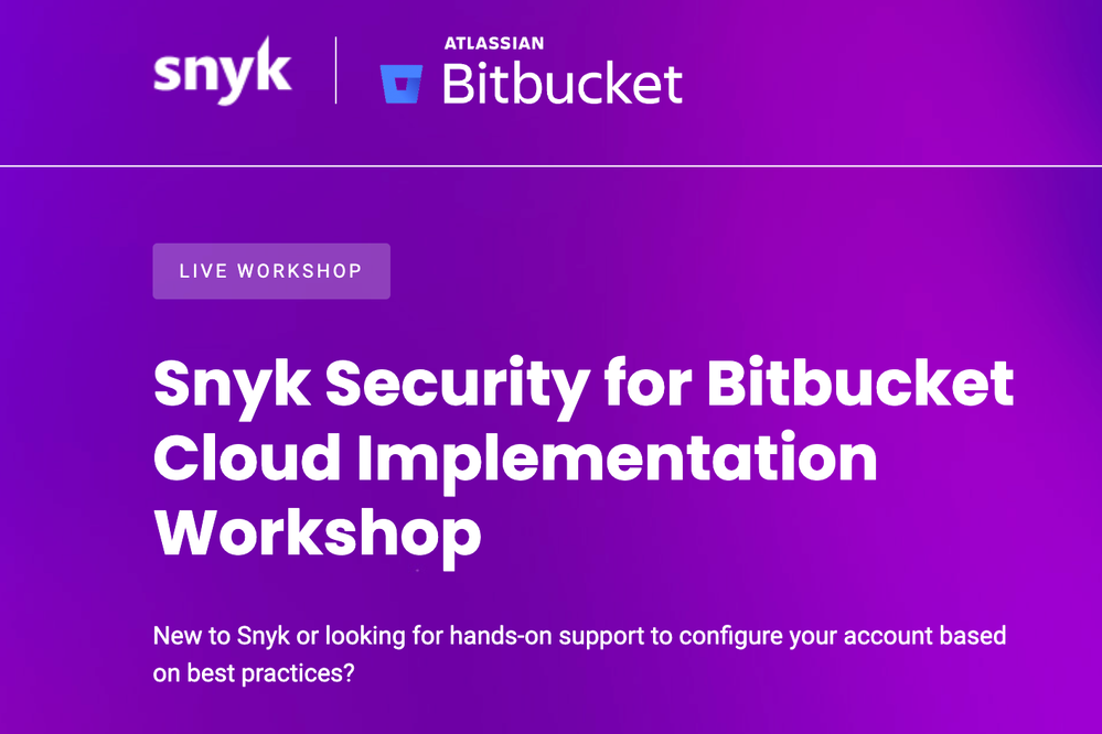 Want to learn how to secure your development environments in Bitbucket Cloud using Snyk’s native integration? Join a free 30-minute implementation workshop hosted by Snyk experts to get started.