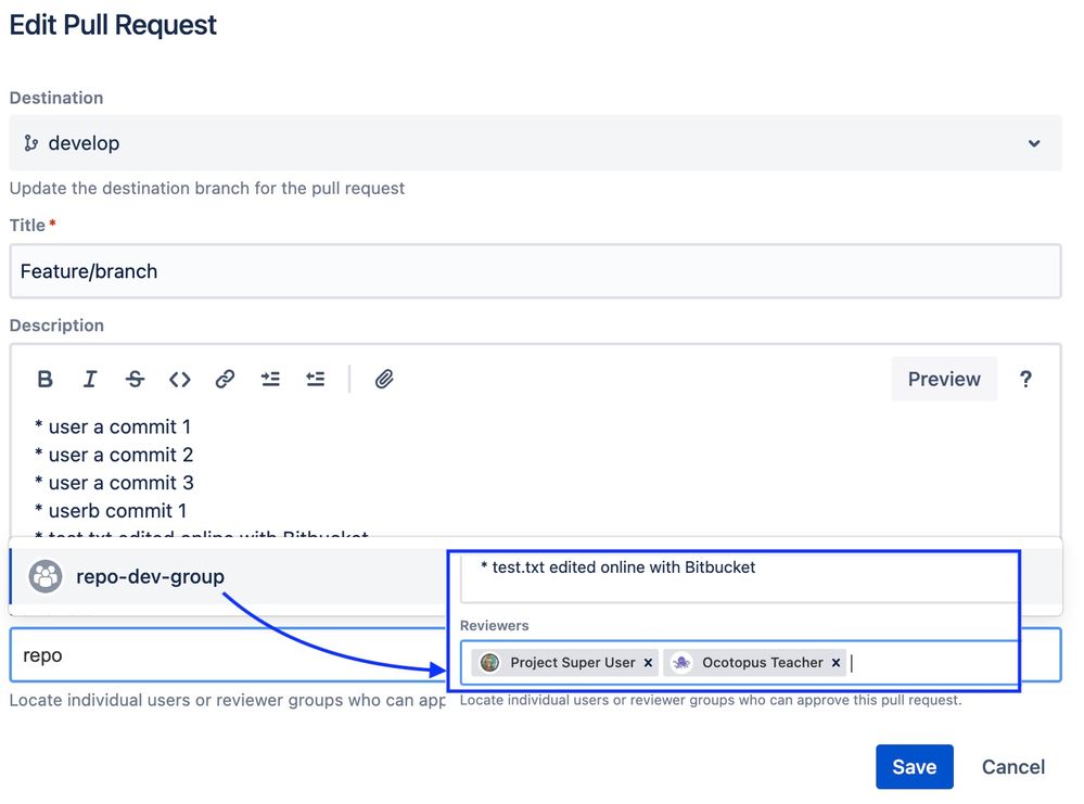 My question is, does pull request have the option to add group to reviewer field?