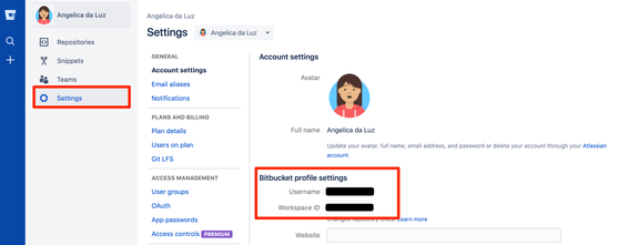 First, you must open your bitbucket first and then go to setting / personal setting @JuanLanus