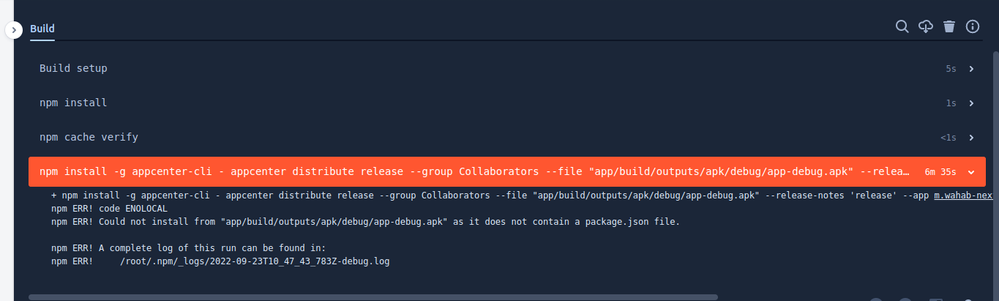 npm ERR! code ENOLOCAL npm ERR! Could not install "app/build/outputs/apk/debug/app-debug.apk" as it is not a directory and is not a file with a name ending in .tgz.tar.gz or.tarYou must be a registered user to add a comment. If you've already registered, sign in. Otherwise, register and sign in.