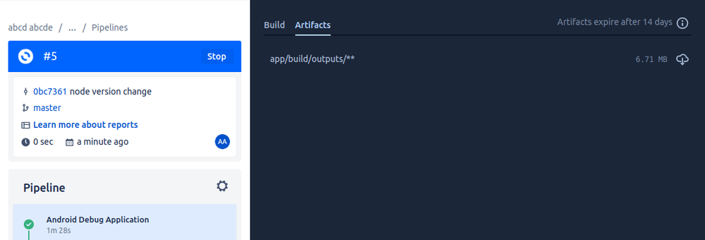 If so, is it generated in the path that you defined as an artifact in that first step, app/build/outputs/** ?