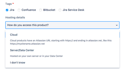 - New: When you create a new post related to a product, you now have the option to select Cloud or Server. This will automatically add the right tags to the post, will provide more information to those trying to answer questions, and eventually route the questions into Cloud and Server subcollections where applicable!