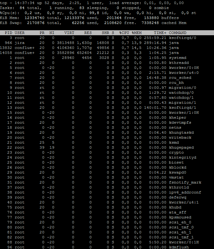 11255 confluence   20   0 13.314g 8.097g  36856 S   5.6 52.2  17940:25 java