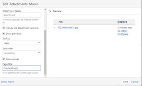 - Under the settings of Attachments macro, define which label should be considered for the filters