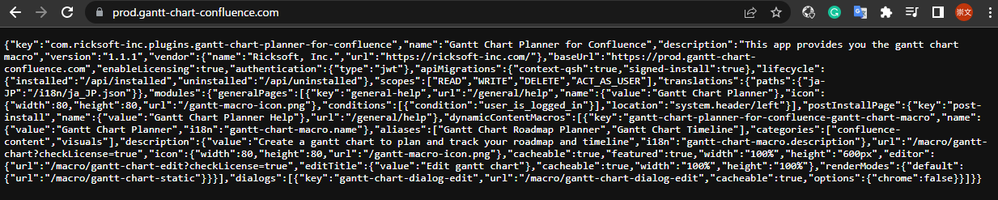 Accessing https://prod.gantt-chart-confluence.com with your browser returns json response like the below if you can access the domain.
