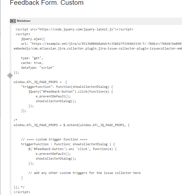 Then I have added a Markdown macro to the Confluence page where I want to modify the trigger button. The macro should allow me to inject JavaScript into the page.