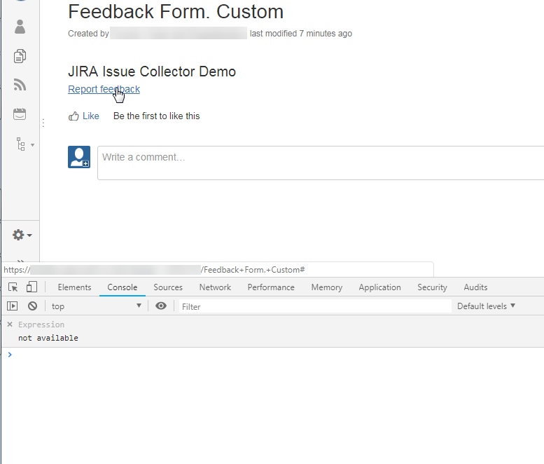 However, when I click the Report Feedback link-button, nothing happens, Jira Issue Collector's form does not show up.