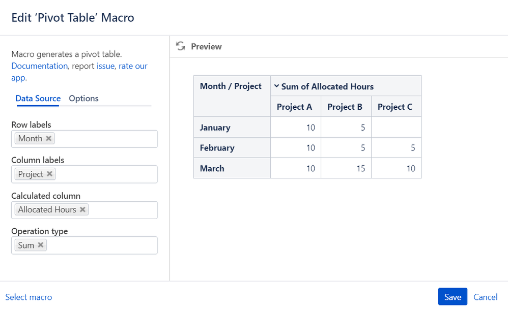 Based on the part of your screenshot, I assumed that we are talking about the Table Filter and Charts for Confluence app and its macros. If it is so, please somehow mention the name of the app and macro names for us not to miss your questions.