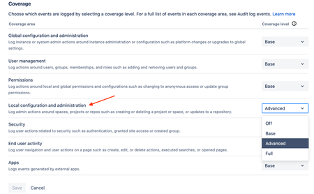 That type of entry in the Audit Log is only enabled after you configure coverage of Local configuration and administration entries to Advanced.