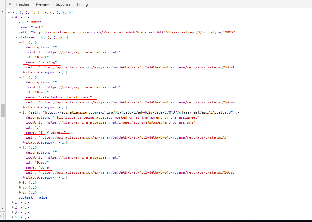 After I swapped statuses in Jira Cloud and added new statuses, an incorrect order of statuses comes in response to my request, how can I in my application find out the correct order of loading statuses using rest api?