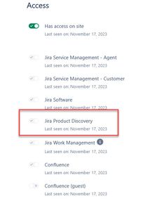 You would go to administration, find your user, open the user and you will see the programs they have access to or have a license to. You would want to pick Jira product discovery.