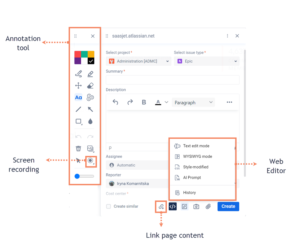 With it, you can not only create tasks/ideas in any Jira project :