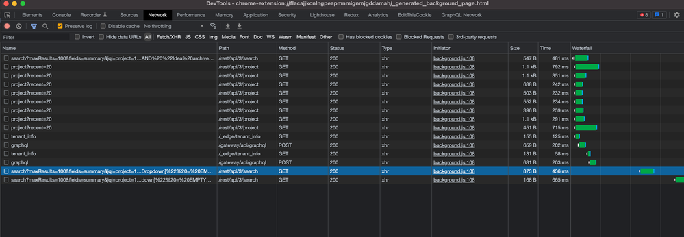Can you maybe share with us some data from the chrome developer tools for the extension?