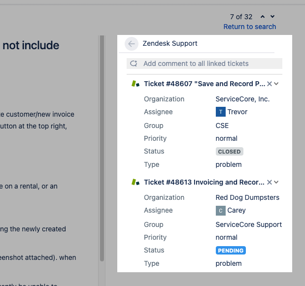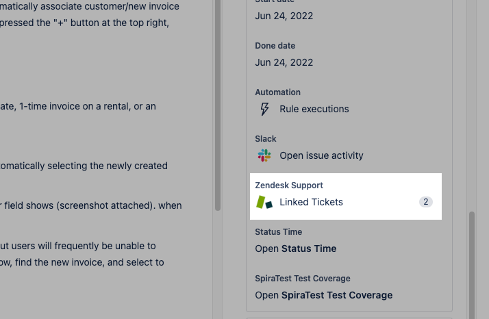 In our case, the integration would link ZenDesk tickets to the Jira ticket, and show an issue count. So at a glance I could see if a Jira ticket was linked to 100 ZenDesk tickets. Then I know in 2 seconds, wow, we have something going on here that I need to deal with.