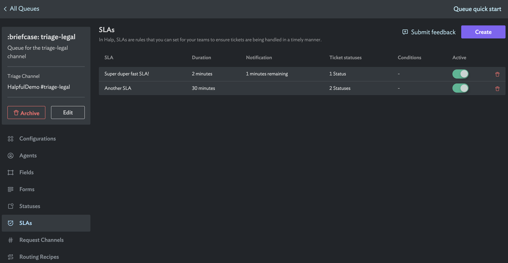 Before SLAs in Halp sort of solved for the first purpose, but they didn’t help with the second or third purpose at all. Our goal was to improve Halp’s ability to solve both these use cases, make them more accessible to non-technical teams, and match the conversational nature of our product.