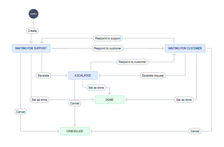 And maybe just to dig a bit deeper - if we have a status 'waiting for the customer' that the agents can set any ticket to, how does the automation later know which status to transition it to after customer's response? For example, take this default workflow from one of Atlassian's project templates: