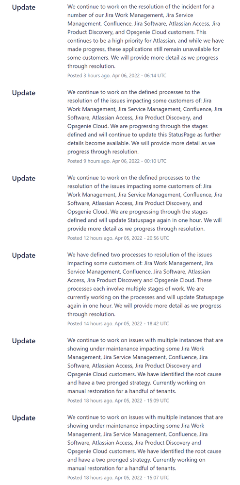 And 2 points gryffindor for @Ulf Sahlin putting together that the insight retirement was to blame for all of our outages 4 DAYS AGO. As far as I’ve seen, that was something that was only actually confirmed by atlassian today. The amount of deductive reasoning that I’ve seen by this forums community members has been nothing short of impressive. Thank you.