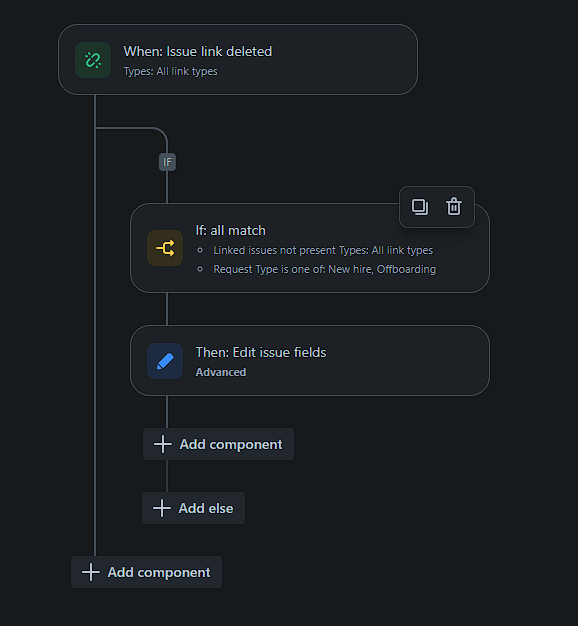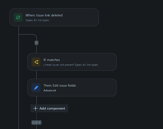 My question here is when we unlink or remove all the linked tickets from ticket (A), how can we create an automation rule using ''Issue Link Deleted'' trigger to update/edit the custom field with "No Linked Issues".