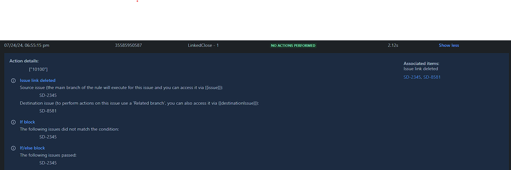 The issue is when I link an issue where Issue(A) is caused by Issue(B), rule says No Action Performed. If I tweak the automation, the rule runs successfully but it edits Issue(C) that is linked with Issue(B). I only want Issue(A) to be edited.