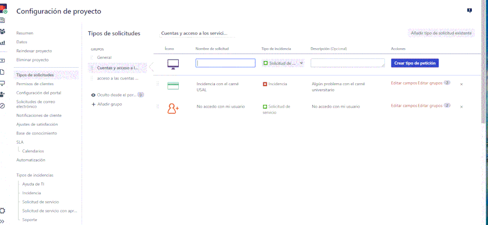 Tienes access de administrador al proyecto que incluye estos tipos de solicitud?