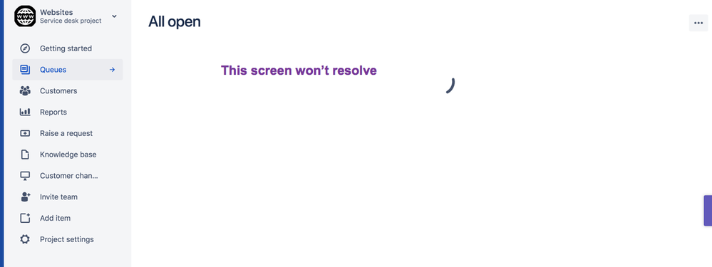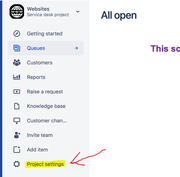 When you are on the "all open" queue page (your last screenshot) in that project, if you click the Project settings in the left hand menu, do you then get to the 'project settings' page?
