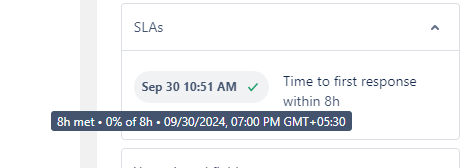 The hover text states "8h met • 0% of 8h • 09/30/2024, 07:00 PM GMT+05:30", which means that:
