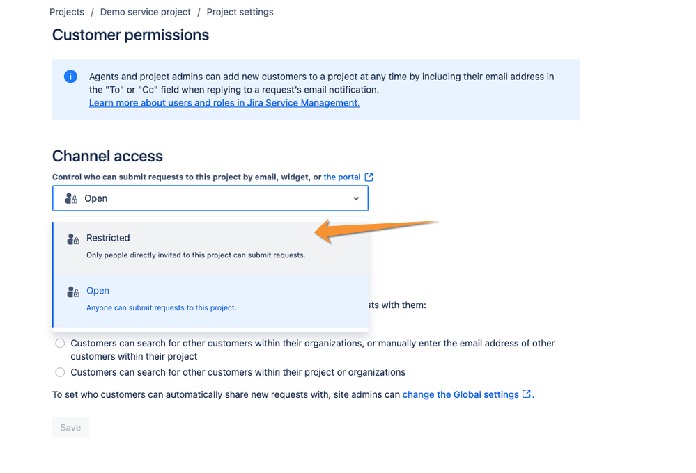 I have the Cloud version and I can found where I can configura Customers can only create requests for themselves from the Portal user