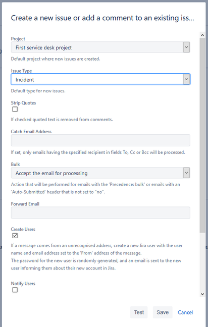 I've set up create issue from incoming mail and its handler, tested automation, everything works, however, when I tried sending email request from other email that is not listed is not registered, Then, the emails aren't processed.