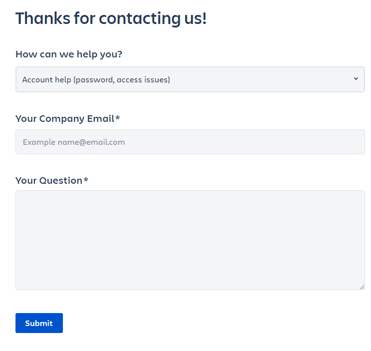 Thank you! This avenue gave me the option of submitting a message when selecting "access issues". The other support page did not give that option (so confusing and frustrating).